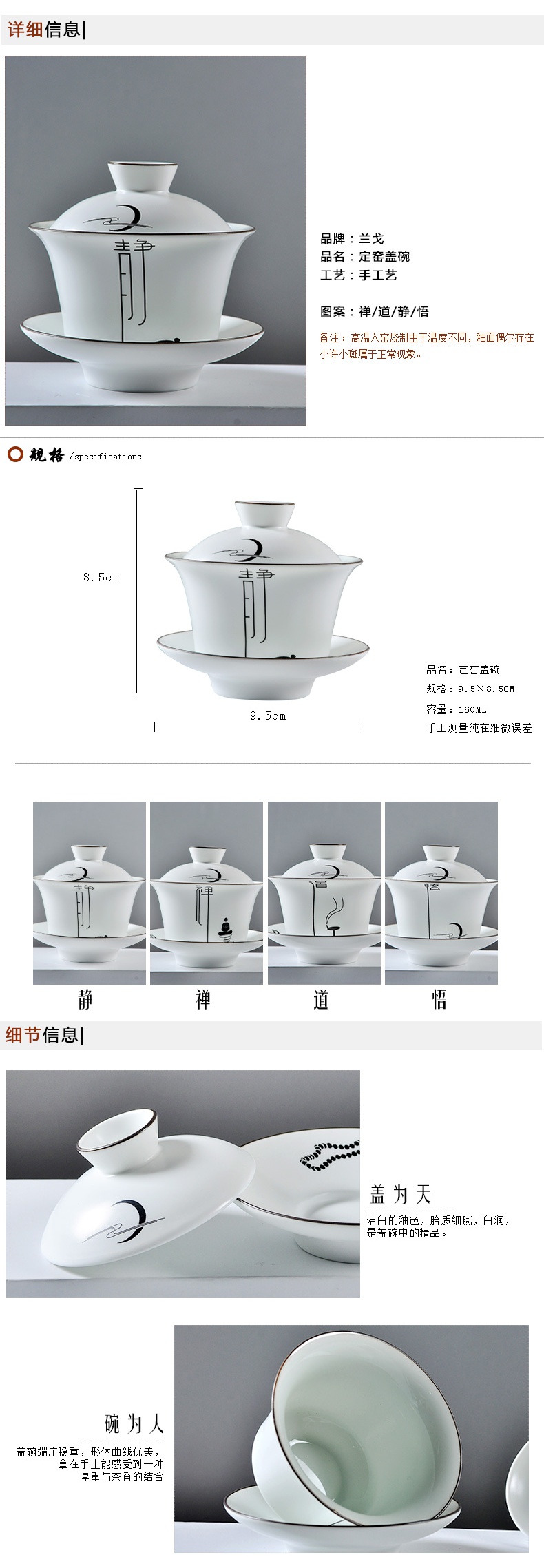 白瓷蓋碗功夫茶具套裝 大號陶瓷茶碗三才碗家用敬茶碗泡茶杯