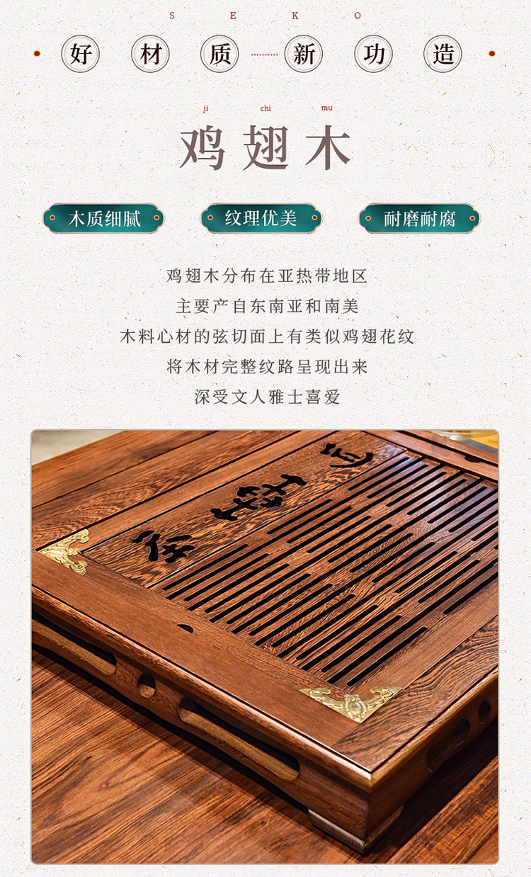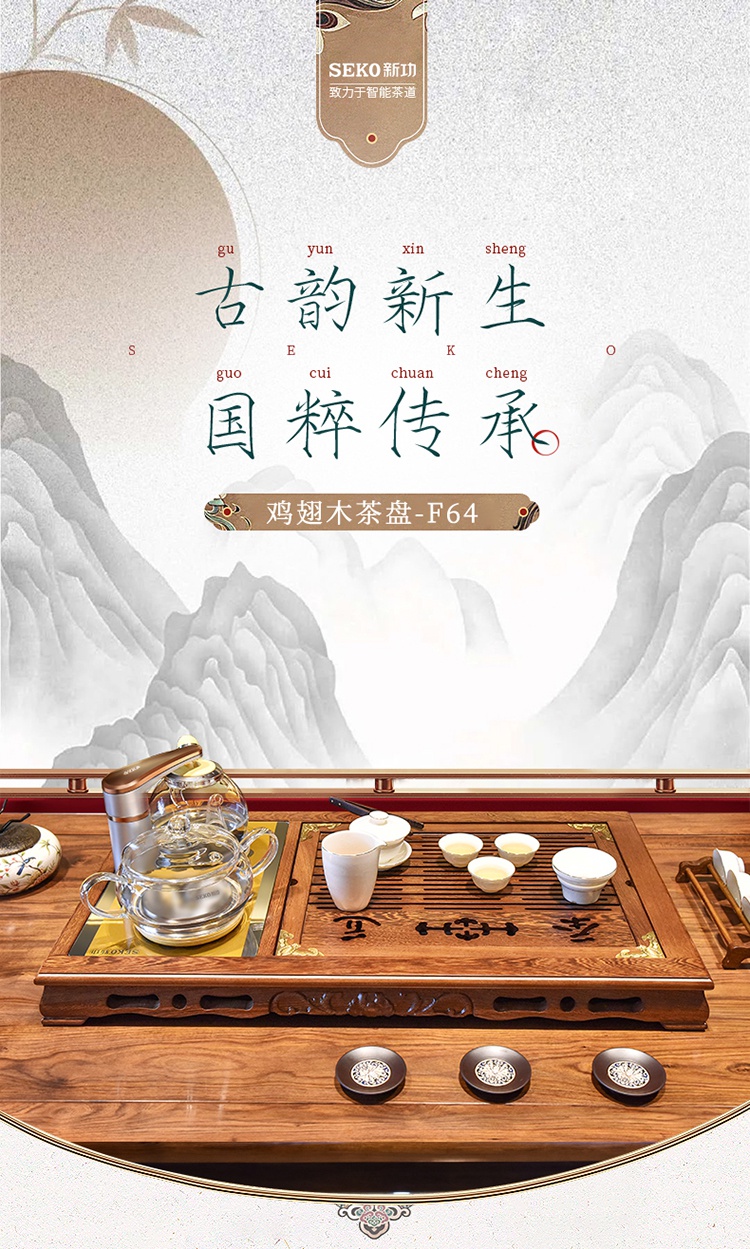 SEKO新功F64配F98茶爐雞翅木四合一功夫茶具套裝自動(dòng)上水電磁爐實(shí)木茶盤(pán)茶臺(tái)