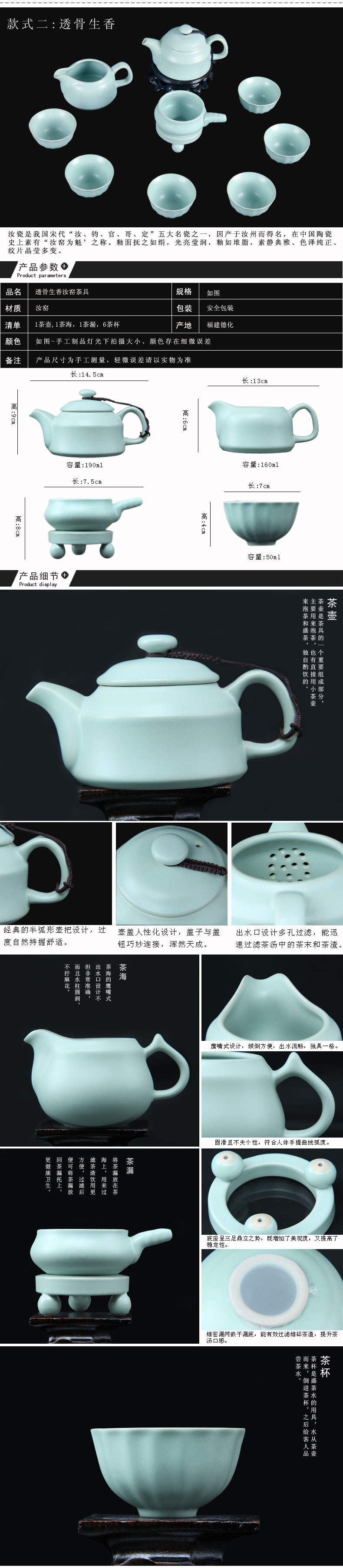 汝窯功夫茶具套裝家用整套汝瓷開(kāi)片汝窯茶具套裝陶瓷
